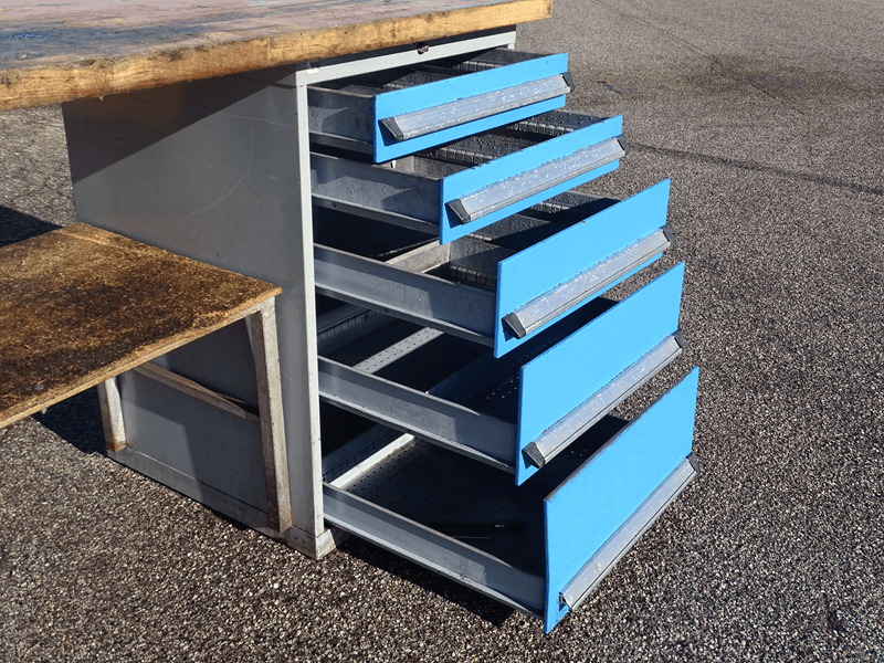 -Tavolo da officina con cassettiera su cuscinetti a 5 ripiani